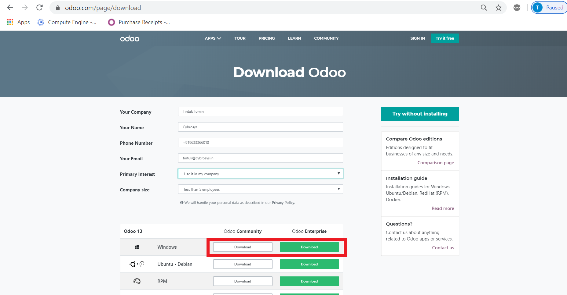 As mentioned in the above screenshot, you need to mention a few details and after that, you are good to go. You can click on the download button which is marked as in the above screenshot. You need to choose the community version.