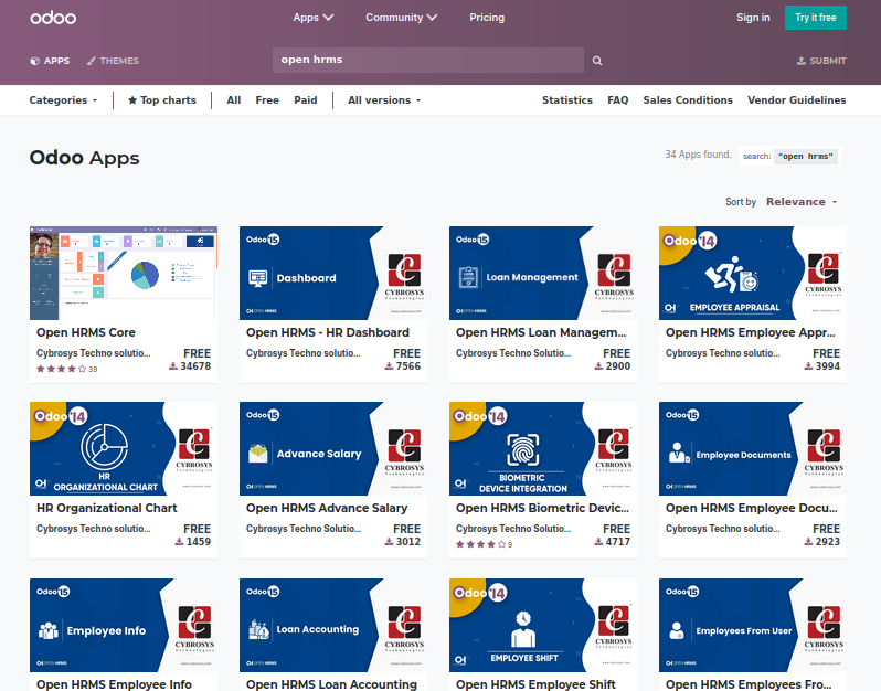 Step 10: As the installation of the Odoo platform has been completed now lets deal with the installation of DocdilHR modules from the Odoo Apps Store.You can download different apps from the Odoo apps store(https://apps.odoo.com/apps).The DocdilHR application can be faltered as depicted in the following screenshot.