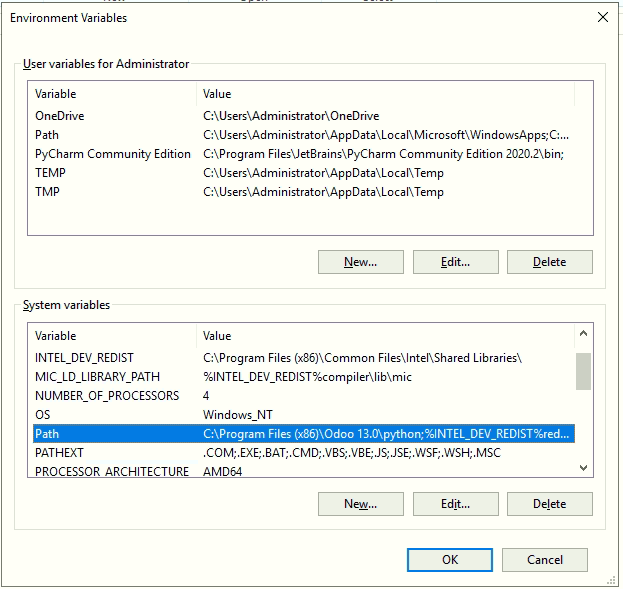 To do so, initially set the environment variable for the python which is available in the Odoo folder.
