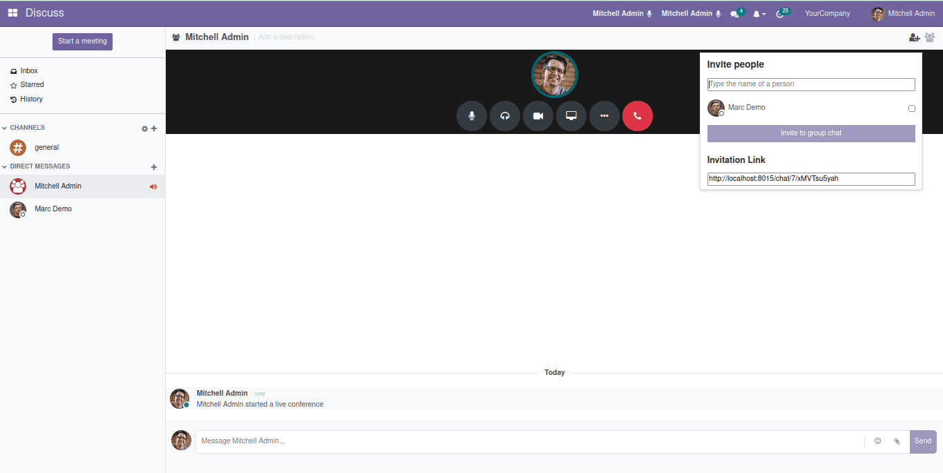 The Discuss app is a discussion platform which operates similar to other most used chat rooms. Here we can send and receive messages. And in the latest version, we can also make a video meeting with the employees using a single click.
