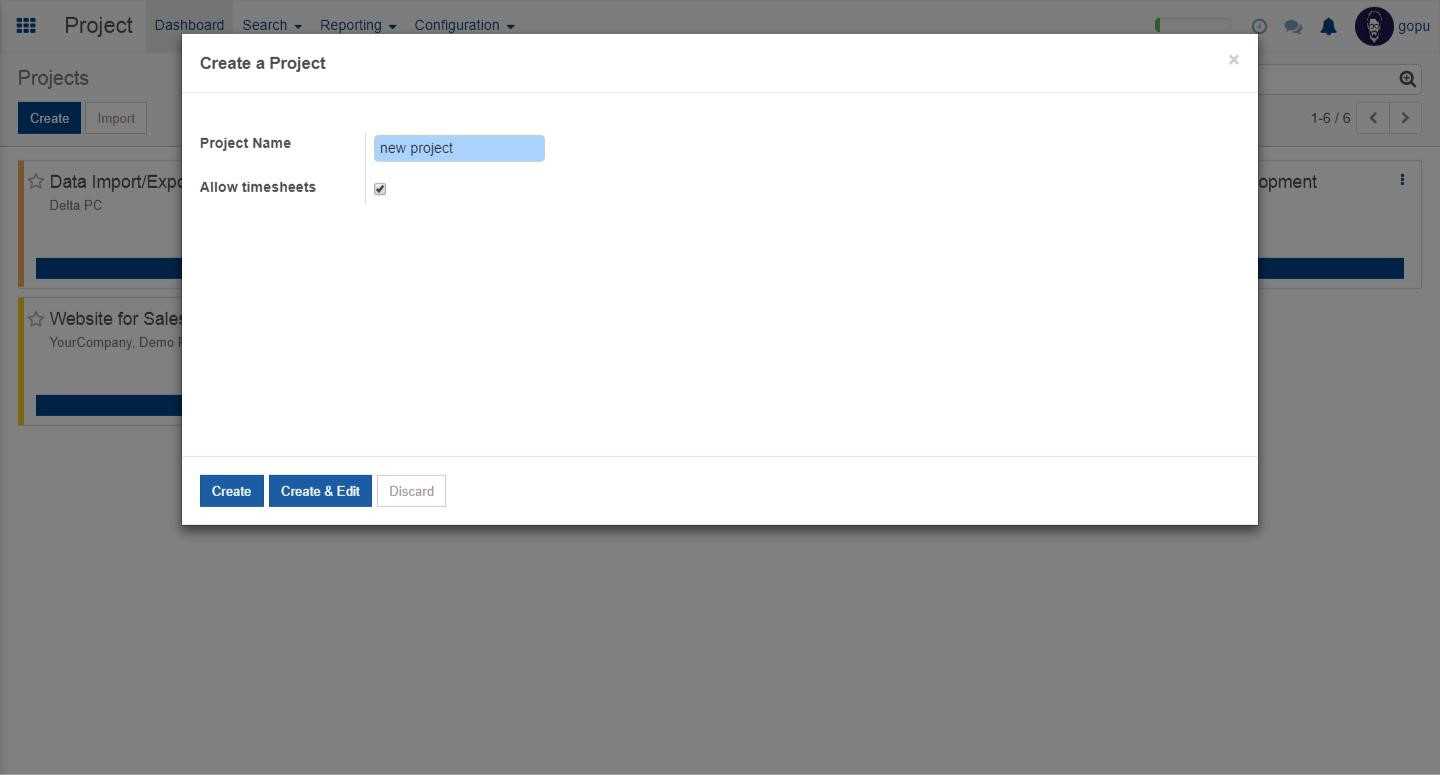 Give a suitable name for your project, to add more detailed information click on create and edit or click on create to add the project instantly.