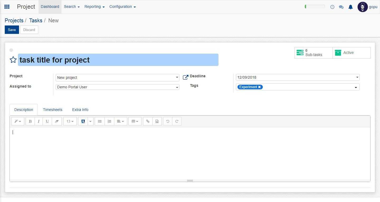 In the task option we can create a particular task.