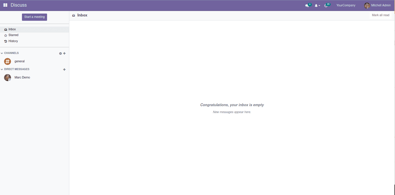 New messages we receive will appear in the inbox. If there are so many messages, we can just click the ‘Mark all read’ button to mark all the new messages as read.