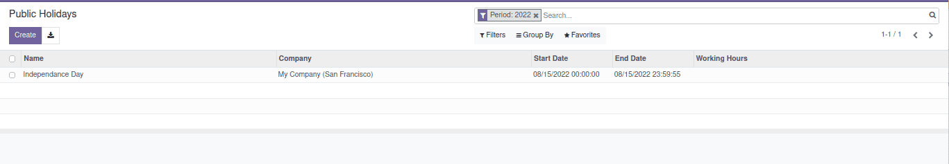 Same way we can configure the public holidays of the year at Leaves > Configurations > Public Holidays.