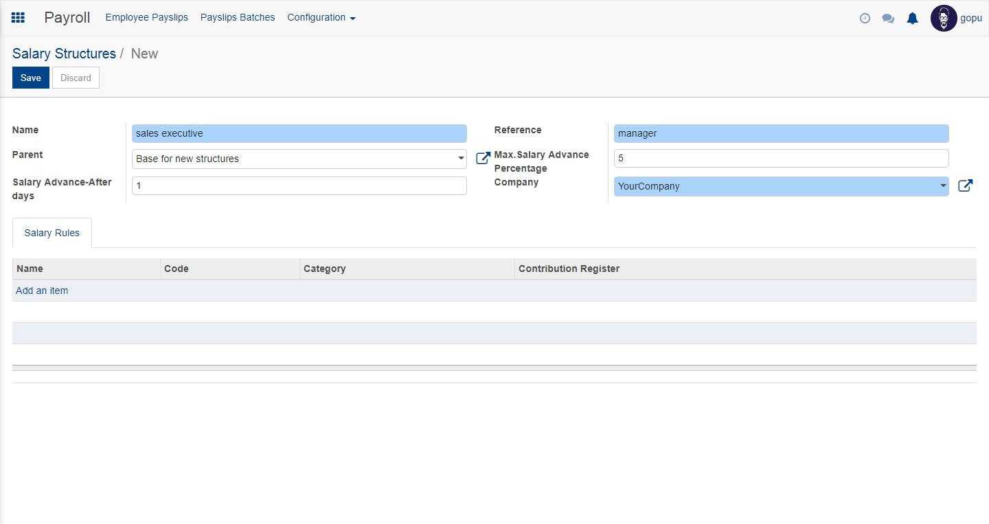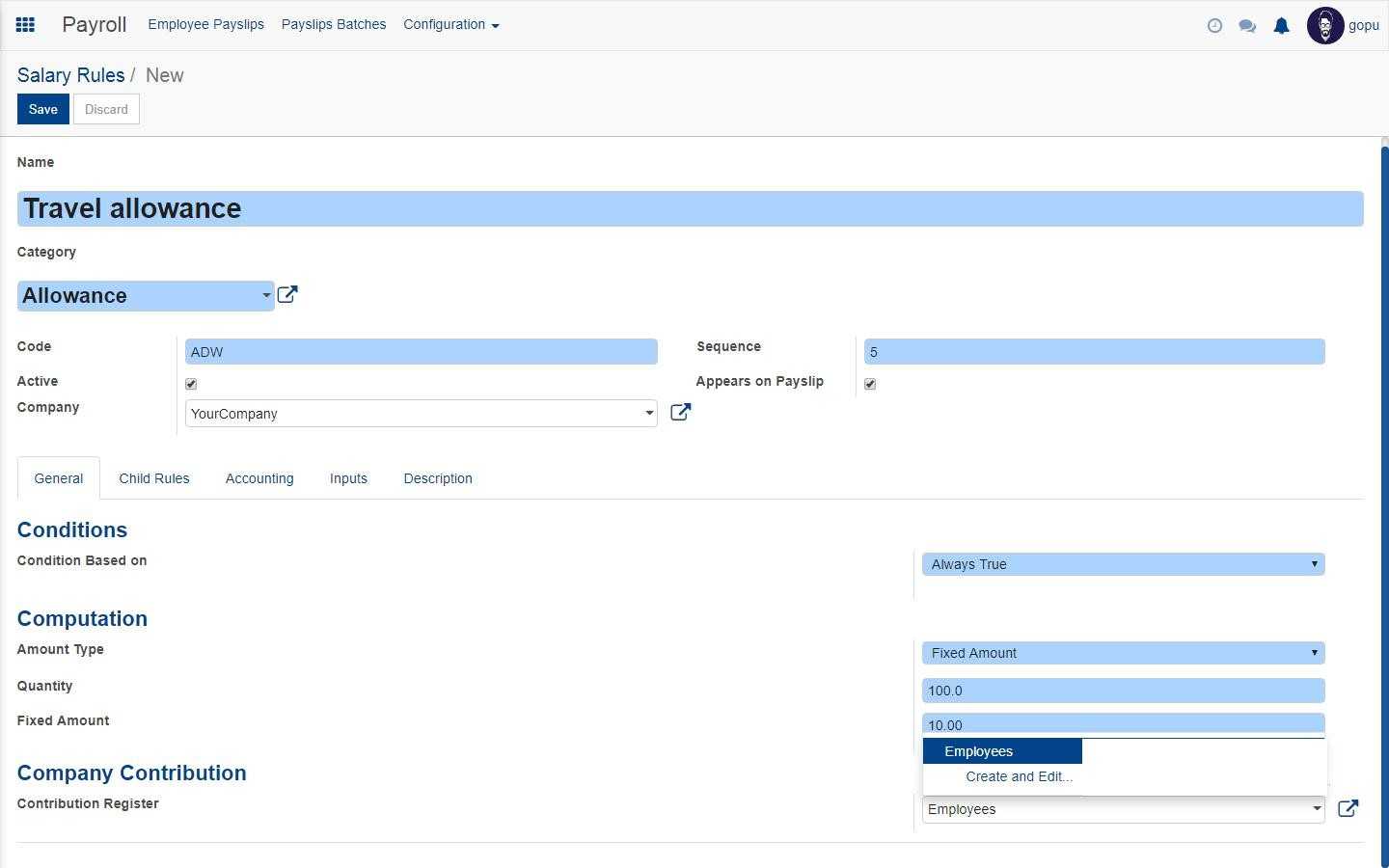 Now we have to add in all the details regarding the salary rule and then click on save button.
