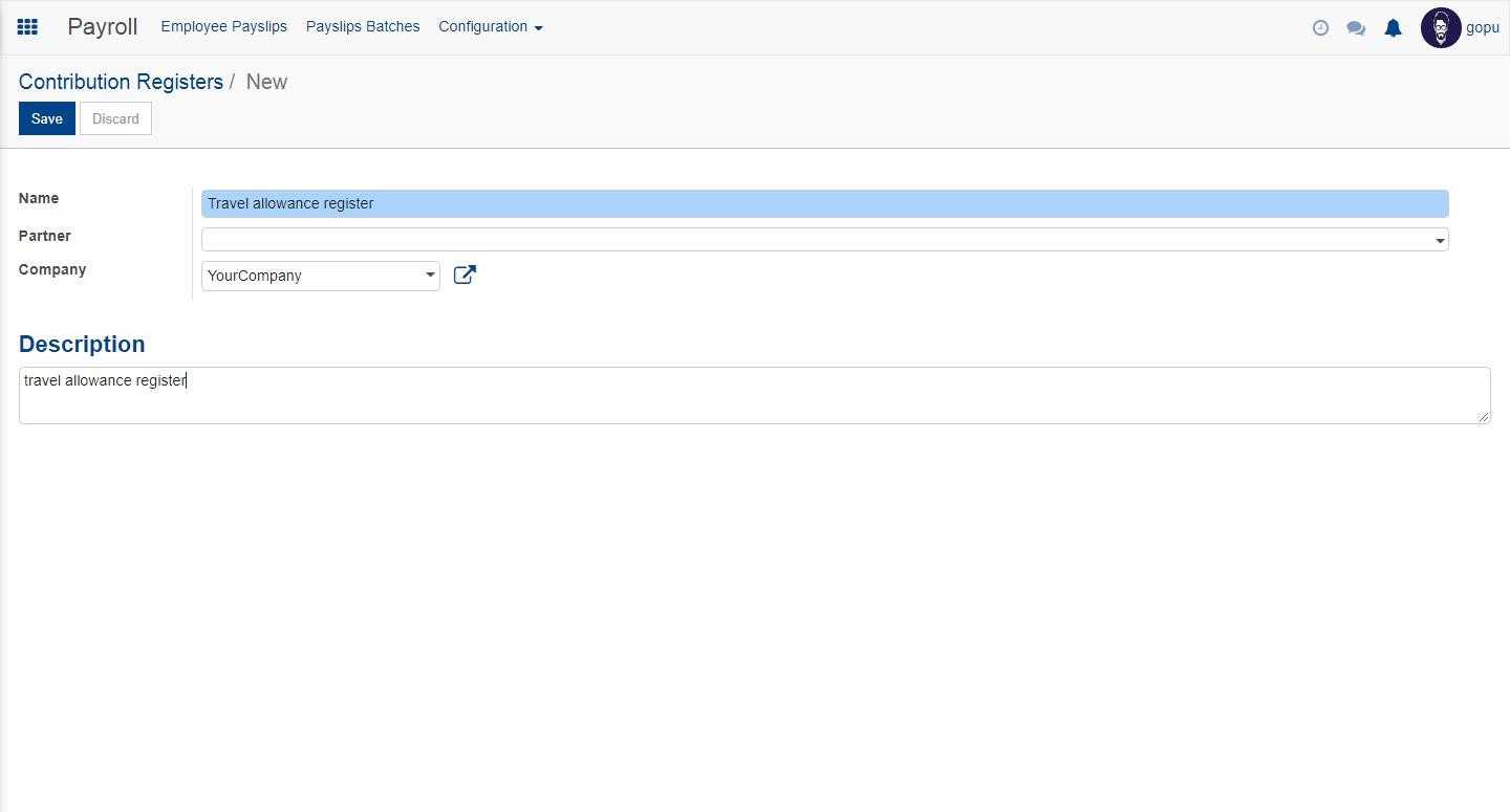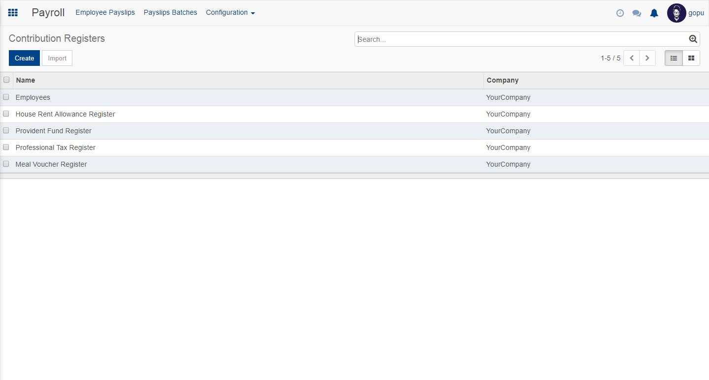 You can see from the screenshot about the various registers. Now click on create button to create a new contribution register.