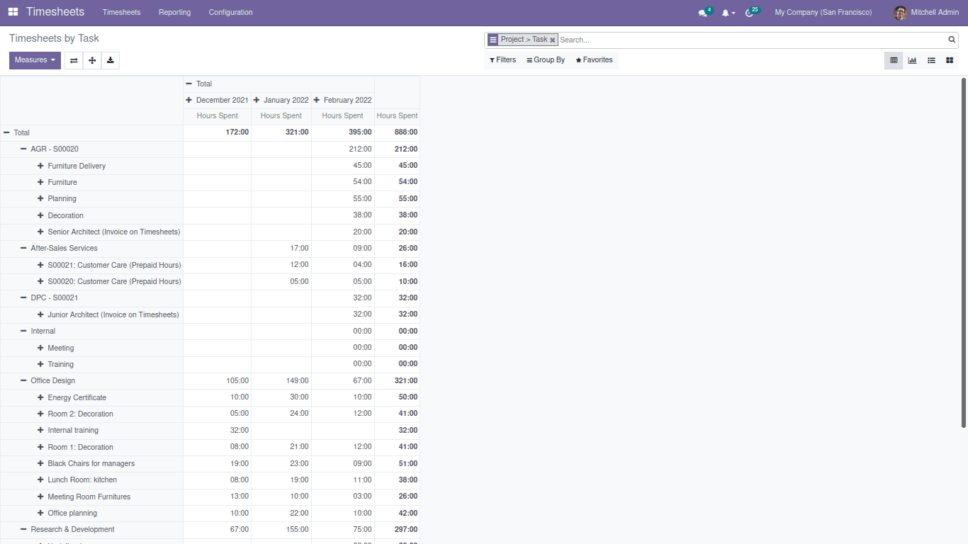 We get a detailed report on the Timesheets from the ‘Reporting’ menu. Reports can be generated based on employees, projects, tasks, or billing types.